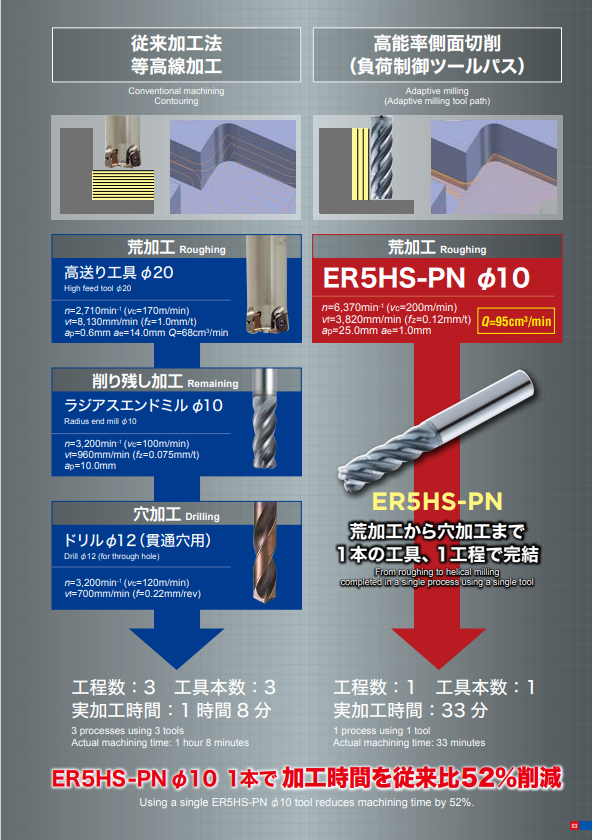 そこで、切削抵抗を抑えつつ高能率加工が可能なMOLDINOのER5HSシリーズをご提案。
