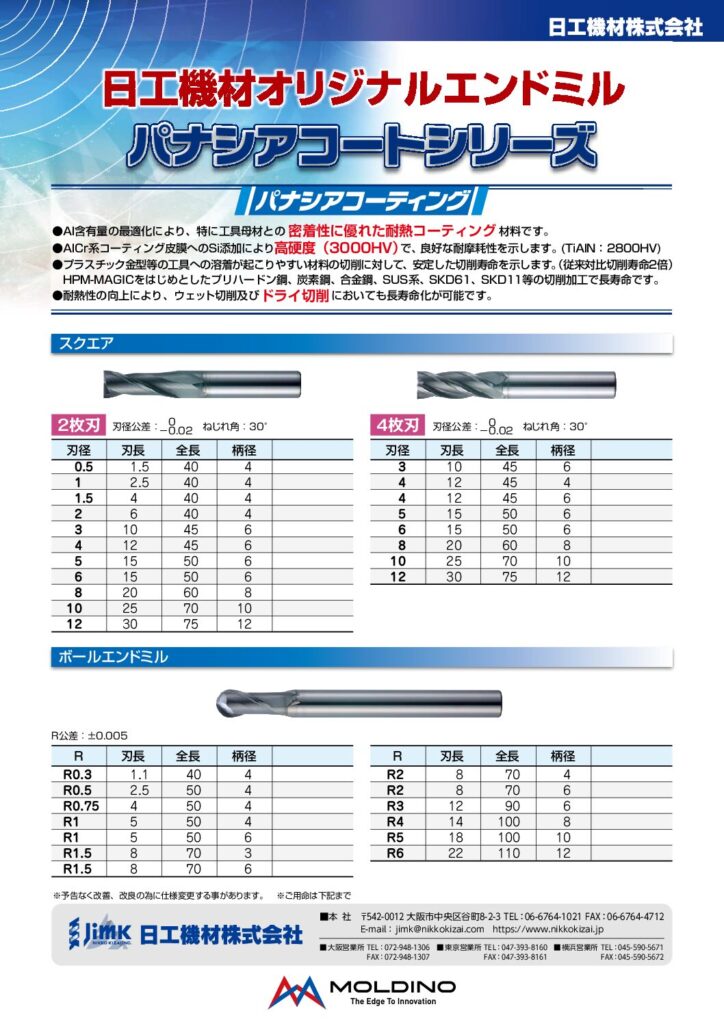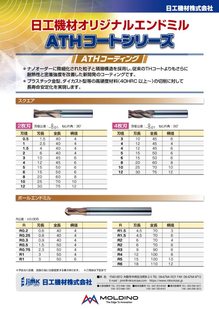 MOLDINO ATHコートエンドミルMOLDINOと共同開発! 低価格を実現!
