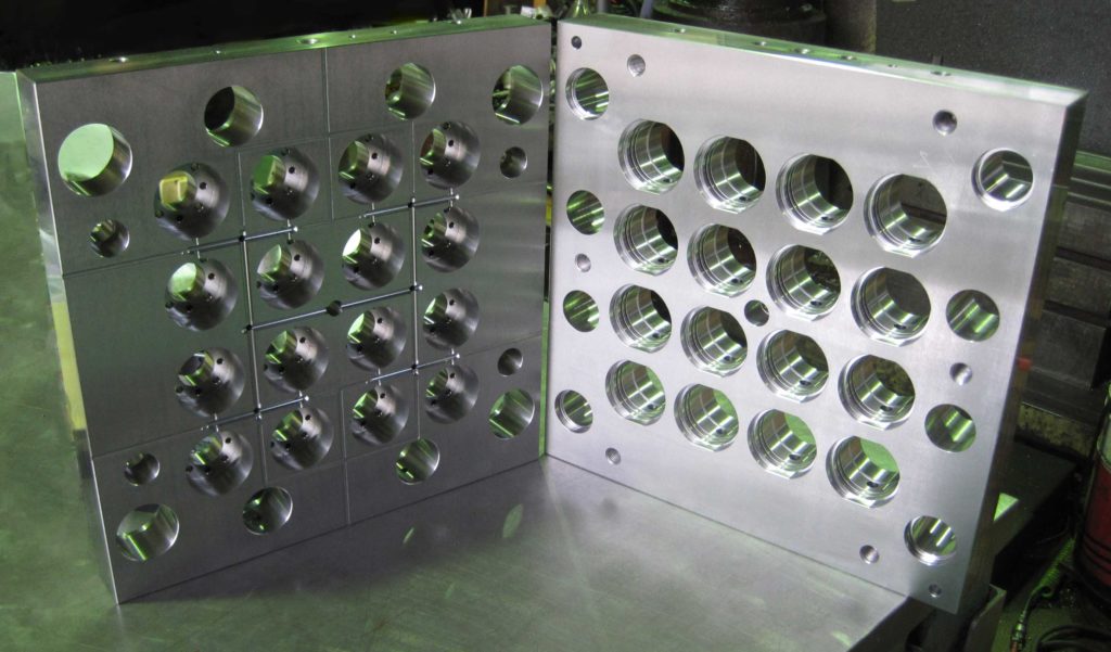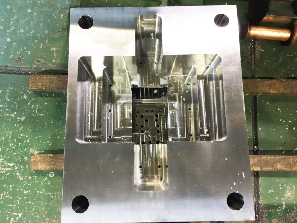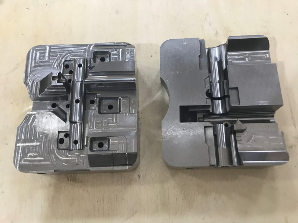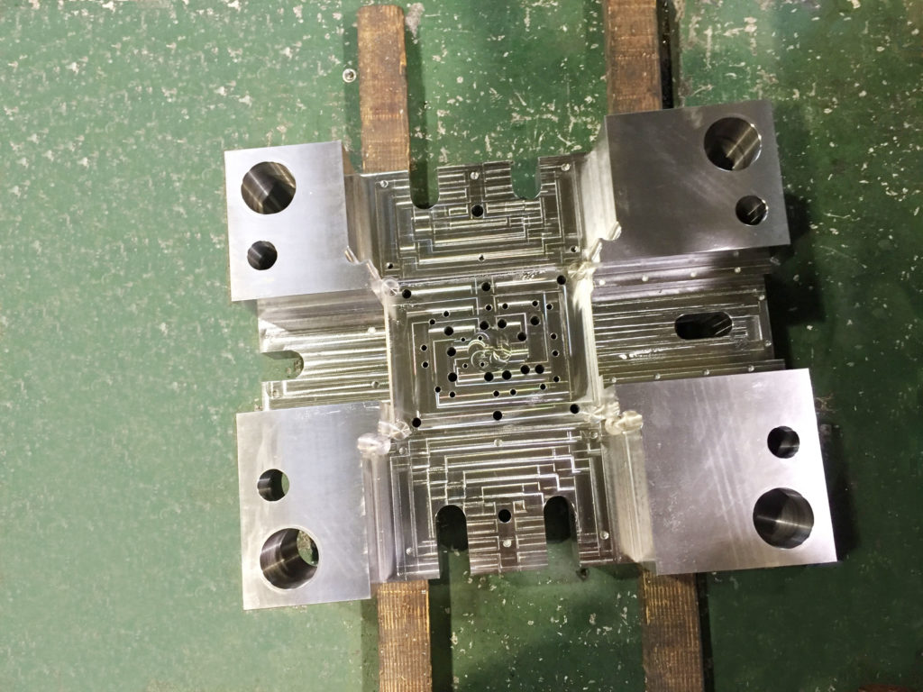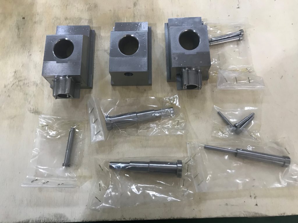 二色金型用、インサートロータリー金型用、ホットランナー金型用、ホットランナーマニホールド、圧縮金型用、割型、モーター・ラック金型用、カセットモールドベース、総焼き入れ金型用、マグネット金型用(非磁性材質)、直彫り金型用(3Ⅾ形状粗彫り) 他、3Ⅾ形状ランナー、Z方向斜めスライド仕上げ、 斜めの斜めアンギュラピン加工(16方向)、ボーリング穴多数個取り(64個取り)、など実績があります。